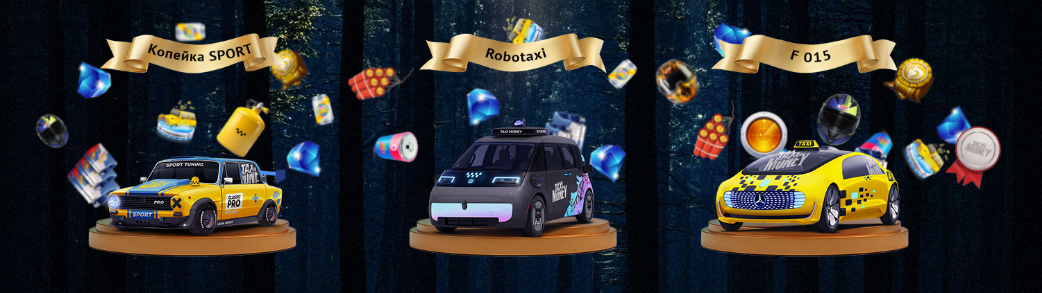 Выиграй бонусные такси прошлой акции в ноябрьских лотереях с монетами! Это чертовски завидные для любого гаража машинки с дьявольским доходом и настраиваемой прокачкой — Призрак 3-го ранга и Пугало 2-го ранга. А также Копейка SPORT, тоже с настраиваемой прокачкой!